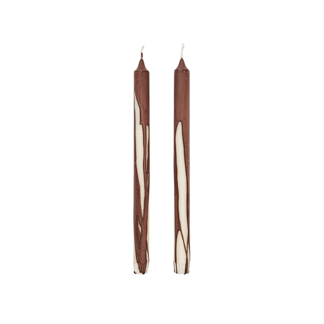 Les bougies Drip de Ferm Living sont bien plus que de simples bougies. Elles se transforment en de petits objets décoratifs pour votre intérieur. Chaque bougie est fabriquée en cire pure et se distingue par sa surface unique, réalisée à la main, où une couleur sombre et profonde coule sur un base clair. Ce procédé crée un jeu de couleurs et de textures saisissant, conférant aux bougies une allure presque sculpturale. Durée de combustion : environ 9 heures.
