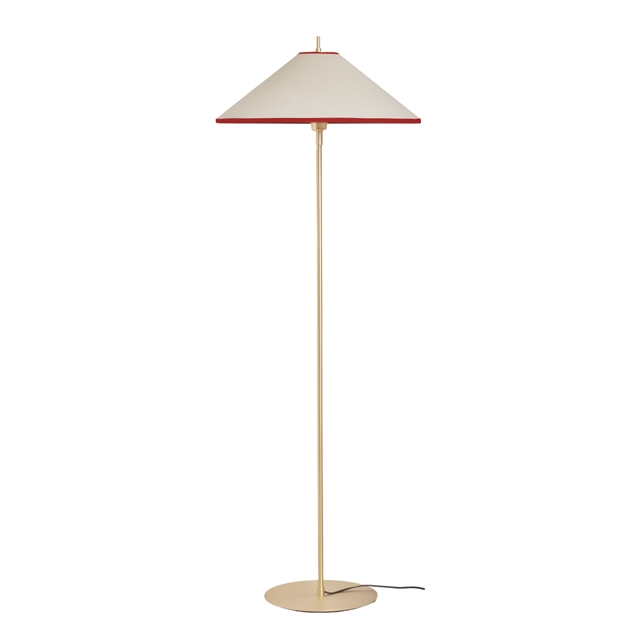 le lampadaire Tafta, au design à la fois sobre et original, allie harmonieusement textile, proportions et lumière. Créé par Rune Krøjgaard en 2024, il témoigne d'une volonté de conférer aux textiles une présence plus architecturale dans l'espace. Son large abat-jour rond enveloppe l'ampoule et diffuse une lumière douce et homogène, créant une ambiance agréable et feutrée sans être envahissante. Le volume du lampadaire est volontairement équilibré, lui donnant une impression de légèreté et de flottement malgré sa taille. Il remplit à la fois une fonction d'éclairage et s'affirme comme un élément sculptural au sein de la décoration. le lampadaire Tafta apporte chaleur, texture et sérénité visuelle à la pièce et s'intègre naturellement aussi bien dans les espaces de vie privés que dans les environnements architecturaux plus ouverts.