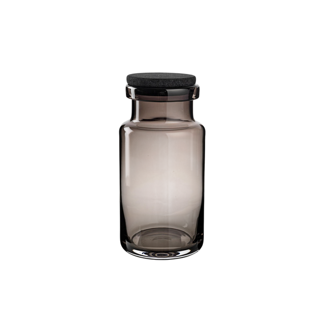Simple et fonctionnel, le récipient en verre est une solution de rangement décorative qui accueille avec élégance tous vos objets, des produits secs et légumes aux effets personnels, que ce soit dans la cuisine, le bureau ou le salon. Chaque récipient est muni d'un couvercle en liège teinté noir, créant un joli contraste avec le verre transparent. Ce matériau étant fragile, nous recommandons de toujours le nettoyer à la main.