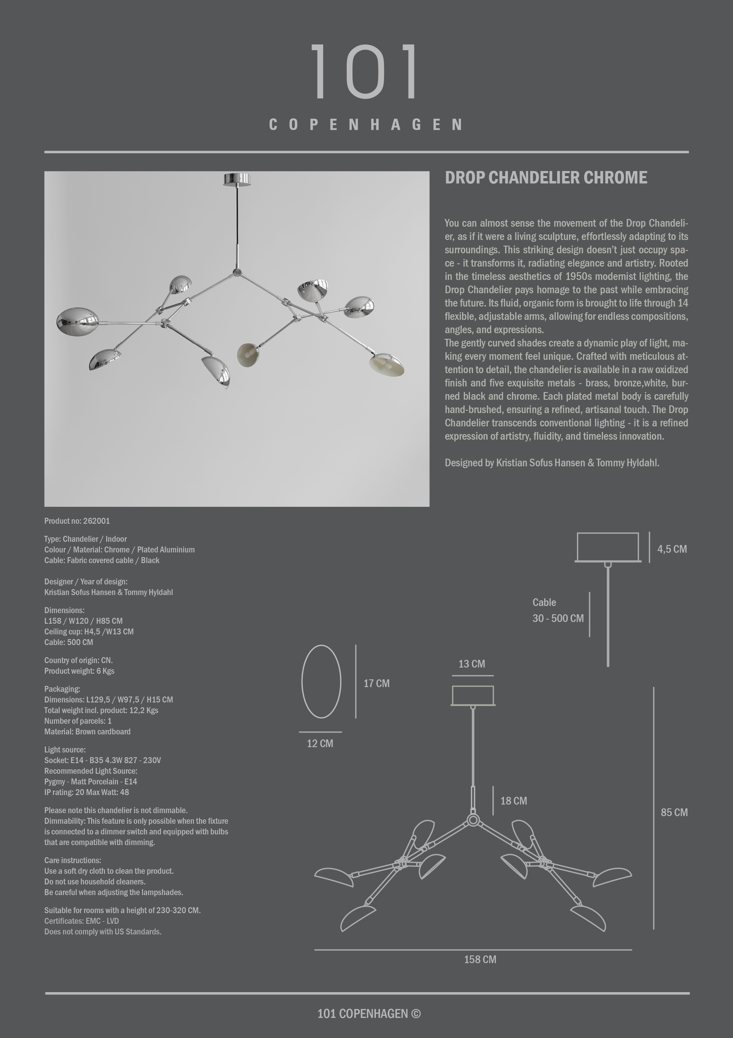 Lustre suspendu 101 Copenhagen Chrome 1.199 € Comparaison des prix en direct Offre exceptionnelle Nous vous accordons une remise spéciale lorsque vous mettez ce produit dans le panier. Prêt à être livré dans 30–40 jours AchatExplorez plus d'informations sur les produits Livraison gratuite dès 150 € Hors meubles volumineux et autres produits sélectionnés Politique de retour de 365 jours Distributeur agréé
