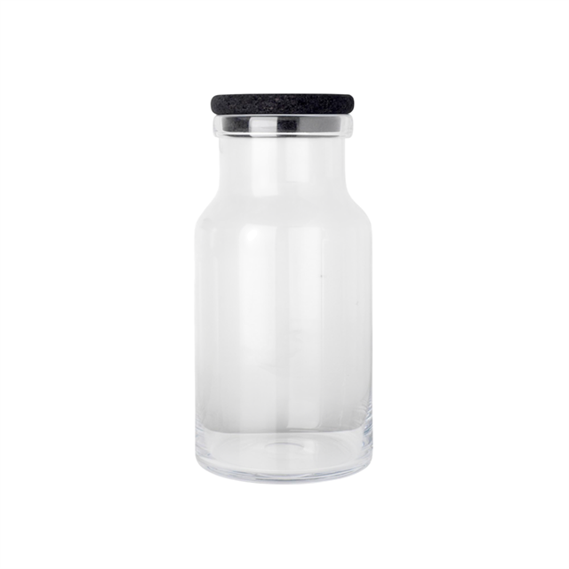 Simple et fonctionnel, le récipient en verre est une solution de rangement décorative qui accueille avec élégance tous vos objets, des produits secs et légumes aux effets personnels, que ce soit dans la cuisine, le bureau ou le salon. Chaque récipient est muni d'un couvercle en liège teinté noir, créant un joli contraste avec le verre transparent. Ce matériau étant fragile, nous recommandons de toujours le nettoyer à la main.