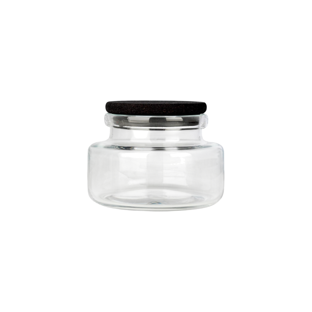 Simple et fonctionnel, le récipient en verre est une solution de rangement décorative qui accueille avec élégance tous vos objets, des produits secs et légumes aux effets personnels, que ce soit dans la cuisine, le bureau ou le salon. Chaque récipient est muni d'un couvercle en liège teinté noir, créant un joli contraste avec le verre transparent. Ce matériau étant fragile, nous recommandons de toujours le nettoyer à la main.