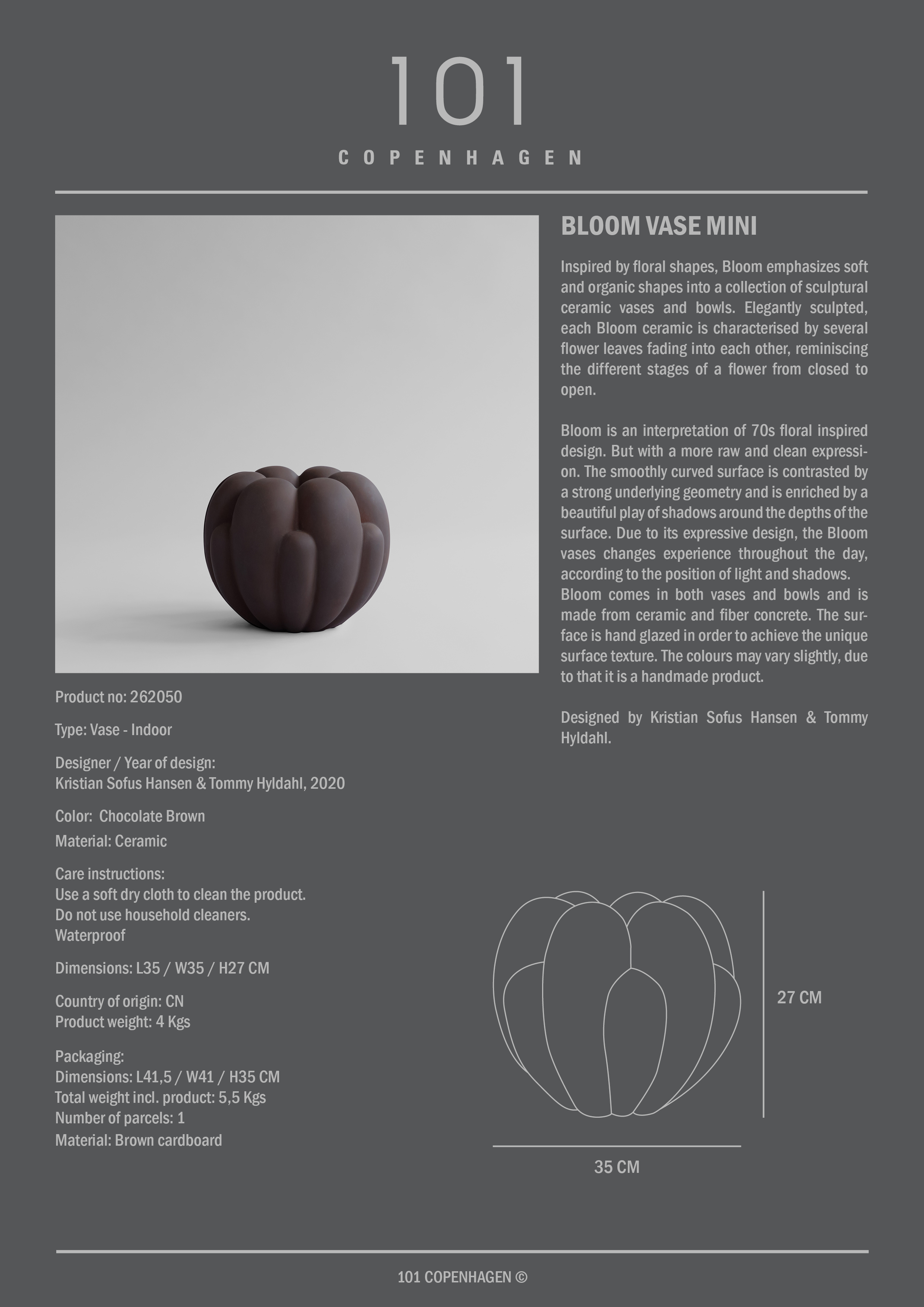 Vase Bloom Mini 101 Copenhagen, Marron Chocolat